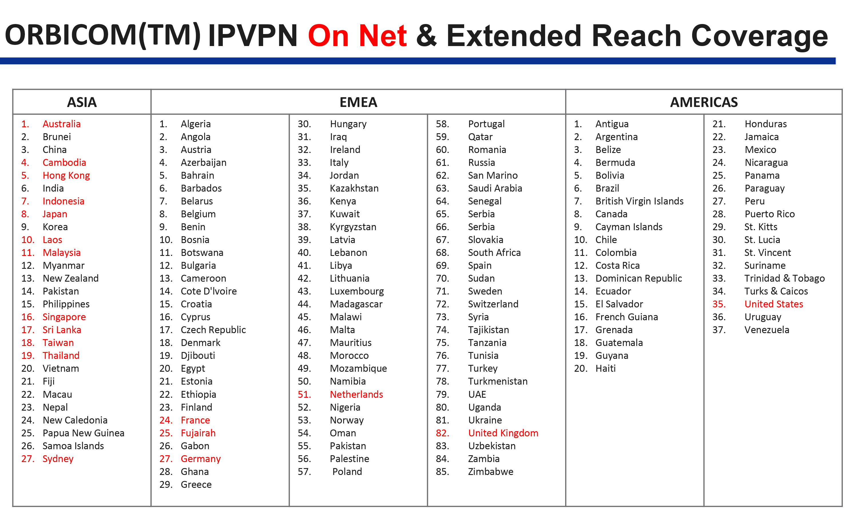 | 3. | Extensive Domestic and Global Coverage -Nationwide coverage and worldwide coverage (Global IPVPN). |